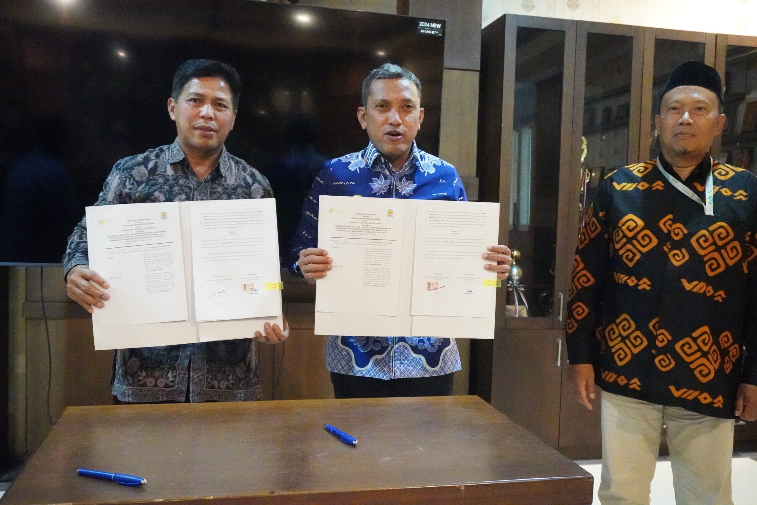 Acara kemudian dilanjutkan dengan penandatanganan MoU antara Poltekkes Kemenkes Makassar dan Pemerintah Kabupaten Jeneponto, mencakup bidang pendidikan, penelitian, serta pengabdian kepada masyarakat sebagai bagian dari penguatan SDM dan pemberdayaan masyarakat.
