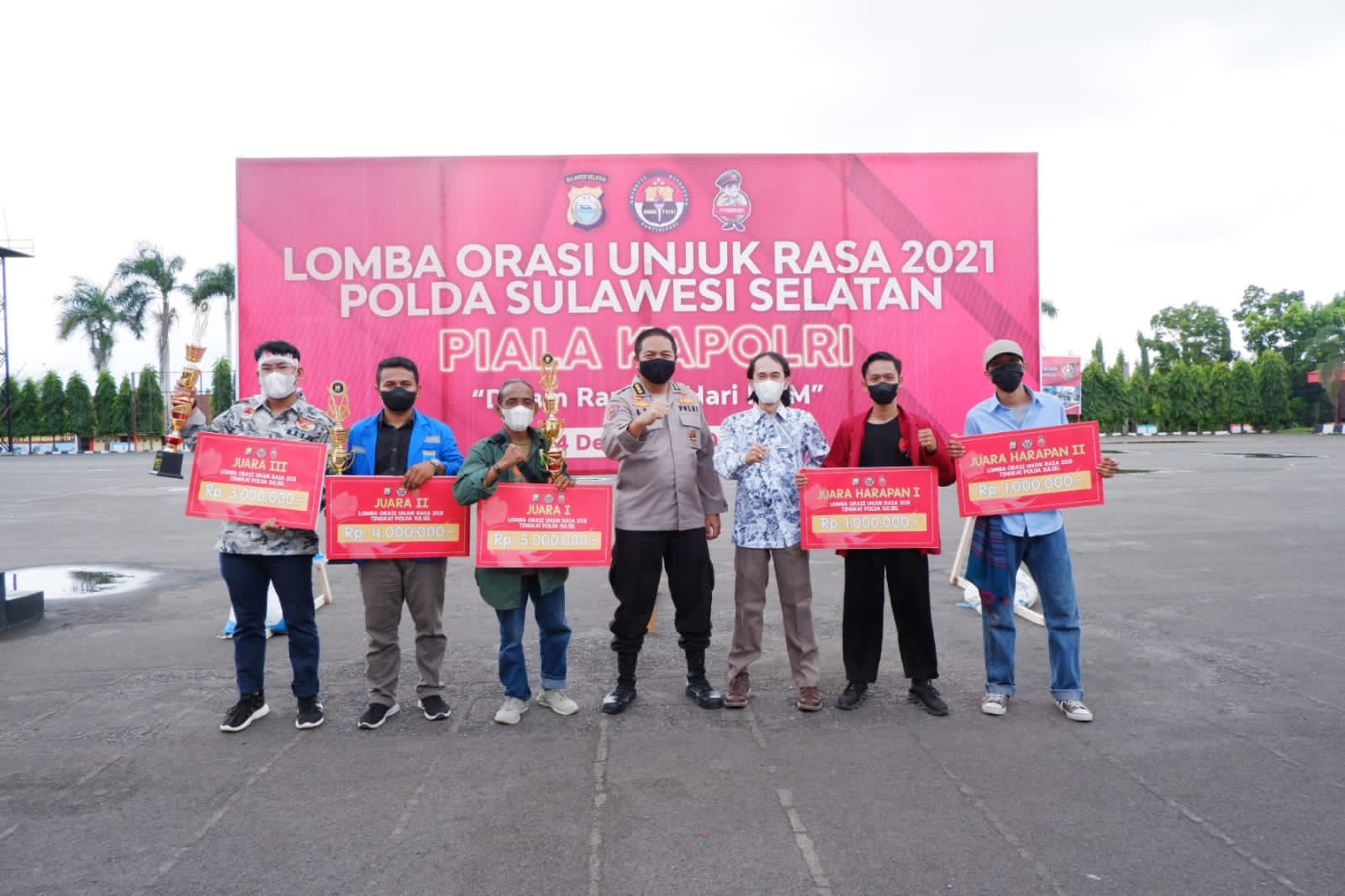 Diketahui sebanyak 30 tim orasi tercatat berpartisipasi mengikuti lomba orasi unjuk rasa Polda Sulsel tersebut. Adapun juara satu lomba orasi di Polda Sulsel dimenangkan oleh Tim Lingkar Hijau, juara dua PMII Palopo dan Tim RGPI Pare-Pare yang menduduki posisi tiga. Para peserta selain mendapatkan Piala dan Piagam penghargaan, juga memperoleh uang Pembinaan.