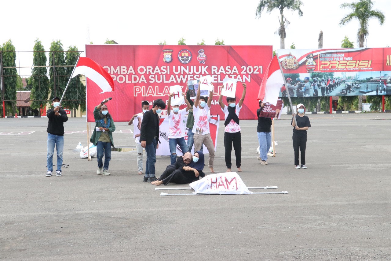 Plt Kabid Humas Polda Sulsel Kombes Pol Ade Indrawan dalam amanat tertulisnya, yang dibacakan Kasubbid Penmas AKBP Drs. Astu mengatakan lomba orasi unjuk rasa ini digelar dalam rangka memperingati Hari Hak Asasi Manusia Internasional yang jatuh pada tanggal 10 Desember 2021.