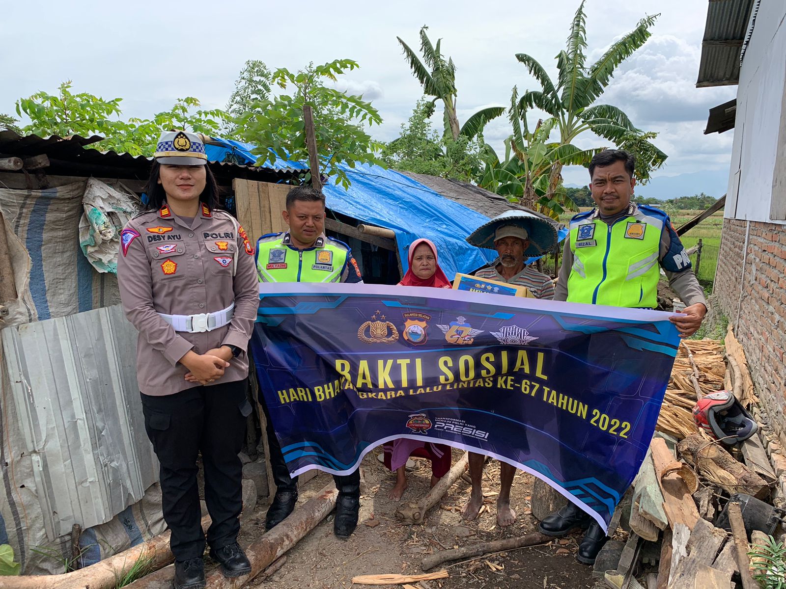 “Jadi tahun ini hari jadi Bhayangkara Lalu lintas kita isi dengan menggelar Bakti sosial berbagi kepada warga kurang mampu.” Ucap AKP Desy Ayu Dwi Putri.