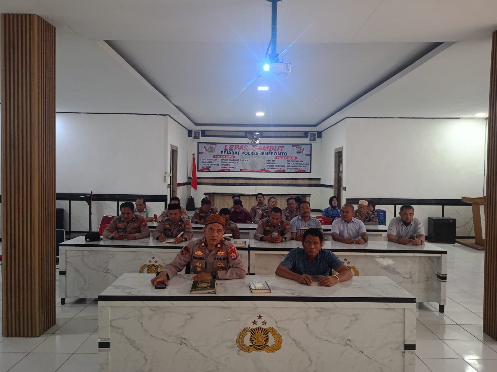 Jeneponto, Chaneltimur.com – Dalam upaya memperkuat iman dan ketakwaan sekaligus meningkatkan mental personel, Polres Jeneponto menggelar kegiatan Bimbingan Rohani dan Mental (Binrohtal) bertempat di Aula Lantai 2 Polres Jeneponto pada Kamis (16/4/2026). Kegiatan diawali dengan pembacaan Surah Yasin bersama.