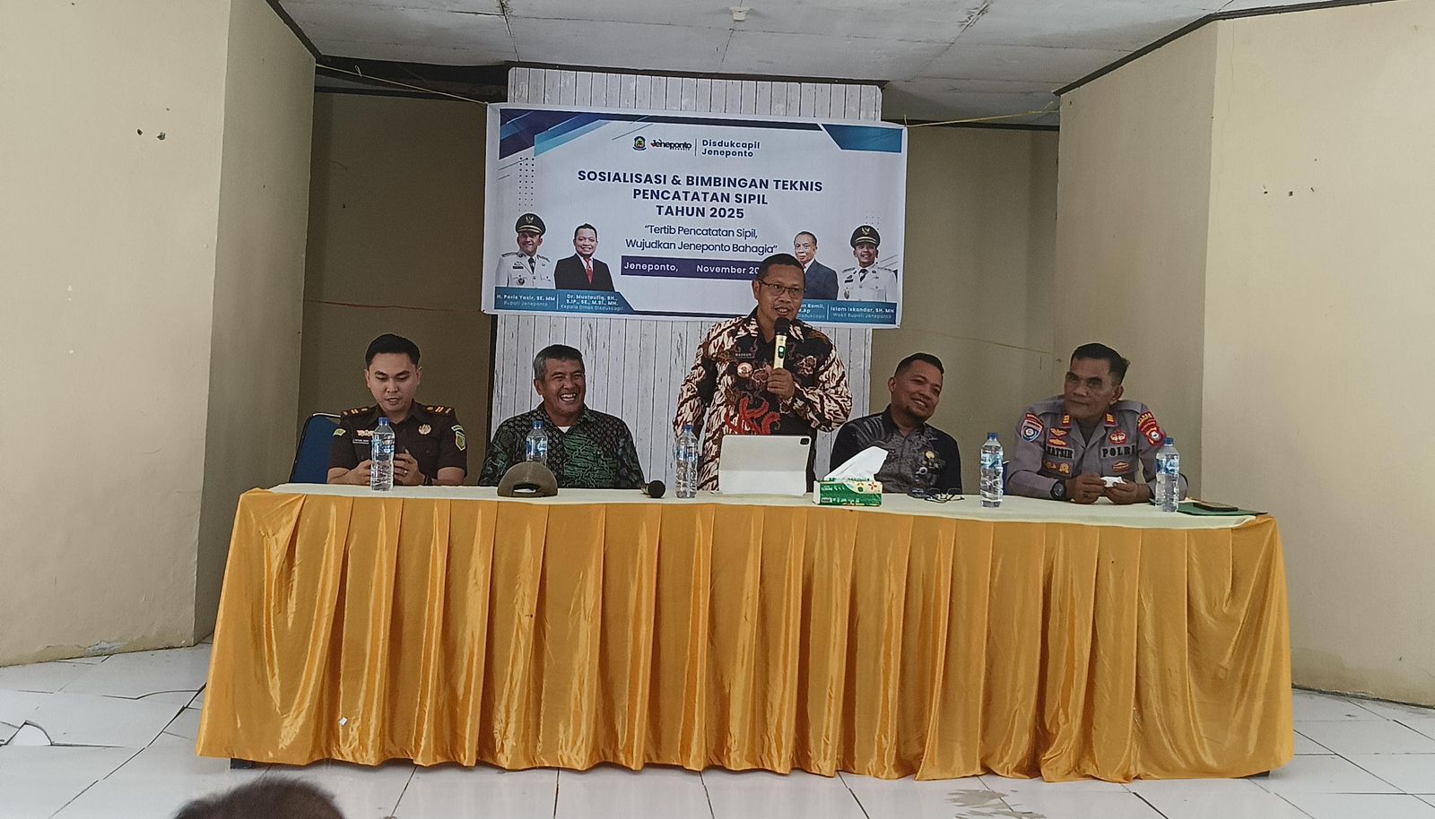 Jeneponto, Chaneltimur.com — Pemerintah Kabupaten Jeneponto melalui Dinas Kependudukan dan Pencatatan Sipil (Disdukcapil) melaksanakan Sosialisasi dan Bimbingan Teknis (Bimtek) Pemutakhiran Data Kependudukan di Aula Kantor Kecamatan Binamu, Kamis 6/11/2025.