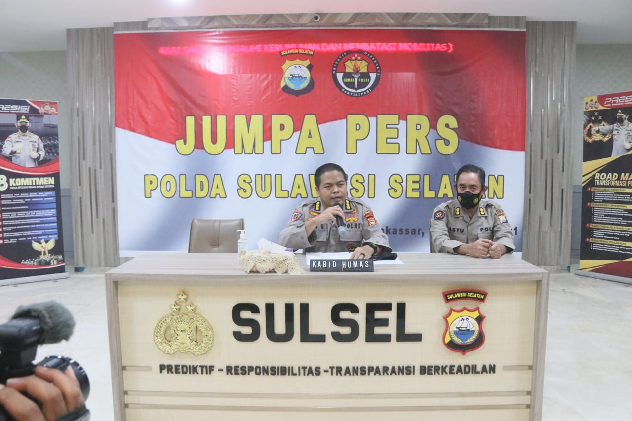 Sulsel,Chaneltimur.com – Plt.Kabidhumas Polda Sulsel Kombes Pol Ade Indrawan memimpin Press Release penangkapan 2 orang terduga anggota Jamaah Islamiya (JI) di wilayah Luwu Timur yakni MU dan MM. Keduanya ditangkap di 2 lokasi berbeda. MU ditangkap di Dusun Kawarasan Tomoni Lutim, Rabu , (24/11/2021) dan MM pada hari Jumat, (26/11) di Dusun Pasi-Pasi Malili Lutim Sulsel.