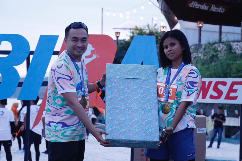Para peserta lari, kembali finish di pantai pasir putih Bira, acara di lanjutkan dengan pengundian door prize kepada peserta yang beruntung.