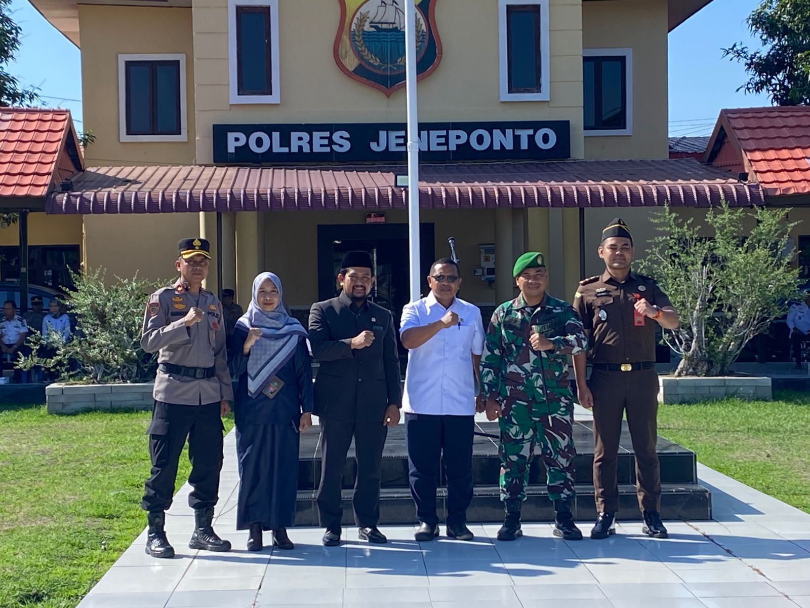 Apel ini dipimpin langsung Sekda Jeneponto Maskur, S.Ag., CGCAE., ( mewakili Bupati Jeneponto ) dan dihadiri oleh Dandim 1425 jeneponto Letkol Inf Abdul Mutalib Tallasa, Waka polres Jeneponto Kompol Sahabuddin S.E., M. Ap., Anggota DPRD jeneponto IWAN S. Pdi., Ketua pengadilan Agama Jeneponto Fadillah S. Ag., M.H., yang mewakili kajari Jeneponto Arfandi Amran S. H., para pimpinan OPD Kab Jeneponto, Para Pejabat Utama Polres jeneponto, kapolsek dan para camat, lurah/ Desa se kabupaten jeneponto.