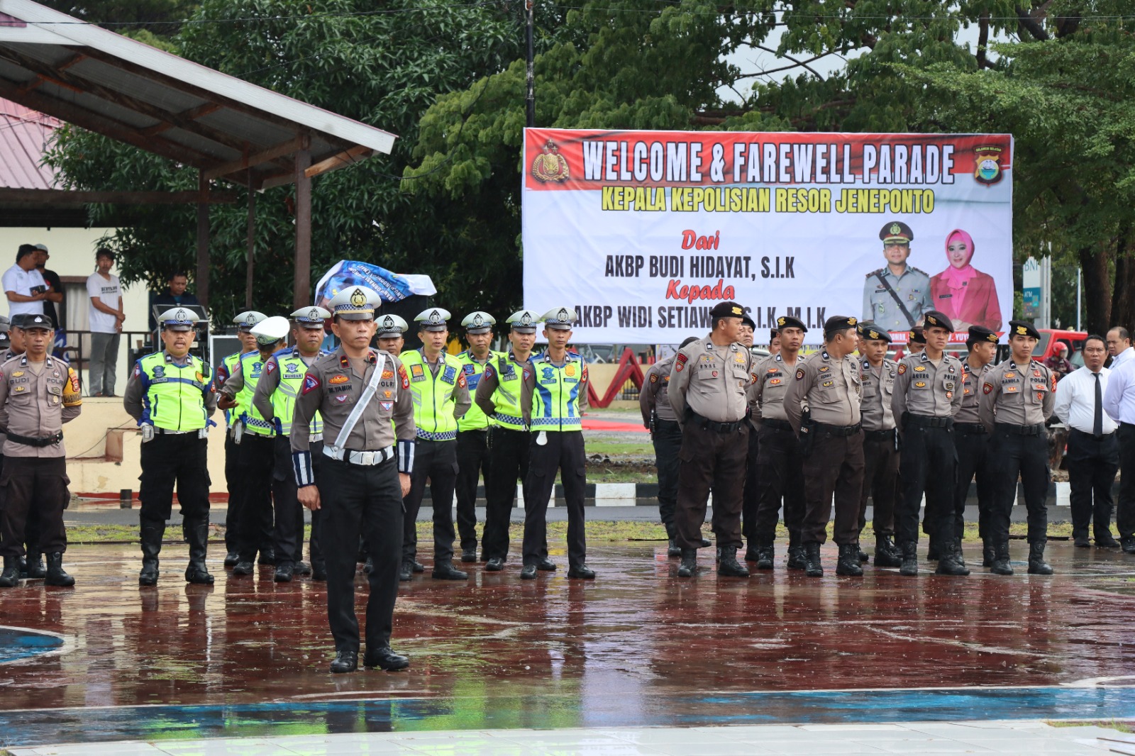 Jeneponto, Chaneltimur.com – Kepala Kepolisian Resor Jeneponto (Kapolres) resmi berganti, Kapolres Jeneponto yang baru, Akbp Widi Setiawan, S.I.K., M.I.K. didampingi sang istri, Ny. Yuyun Widi disambut meriah dengan tari – tarian dan dihadiri oleh seluruh PJU Polres dan Polsek Jajaran Polres Jeneponto.