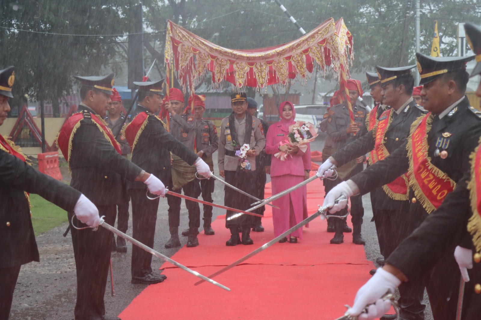 “Serangkaian kegiatan penyambutan, ramah tamah dan lepas sambut akan dilaksanakan hari ini sesuai rundown akan digelar acara tradisi pelepasan pejabat lama dengan berjalan dari ruang lobi hingga ke pintu gerbang Polres” Ungkap Waka Polres
