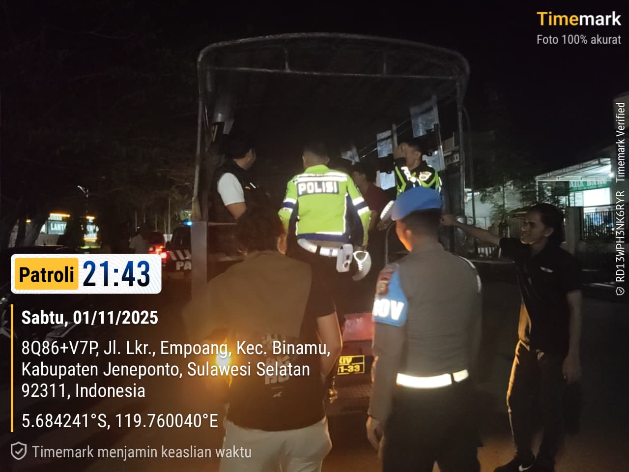 Jeneponto, Chaneltimur.com – Guna menciptakan Situasi wilayah hukum Polres Jeneponto yang aman dan kondusif, Polres Jeneponto melaksanakan patroli gabungan yang dilaksanakan minggu (1/11/2025) malam.