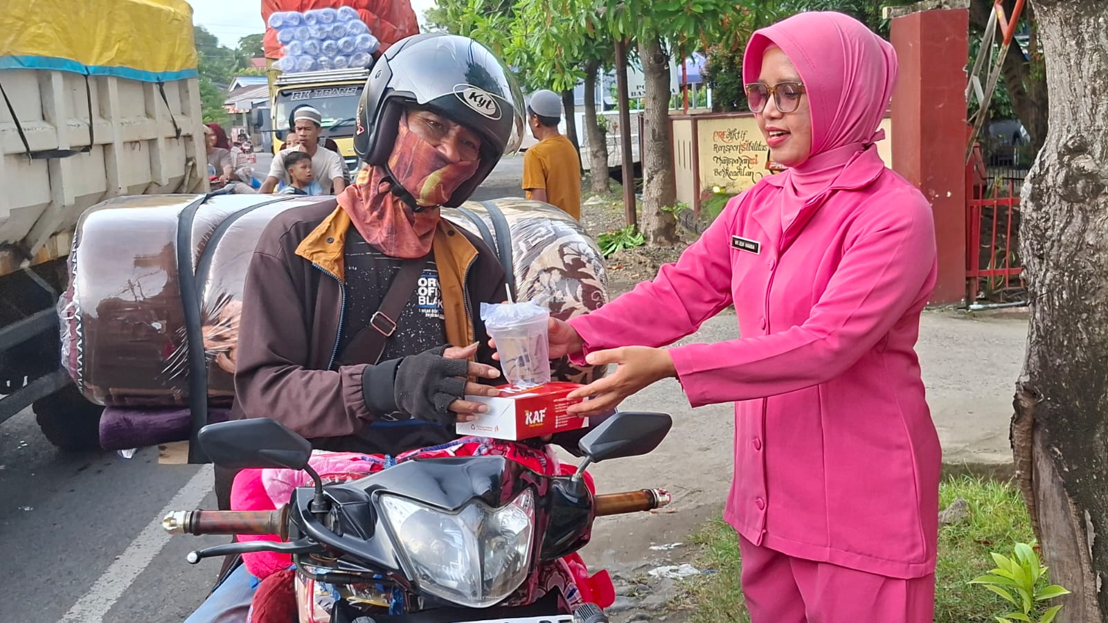 Kegiatan yang dipimpin langsung oleh Kapolsek Bangkala, AKP Saifullah Syan, ini bertujuan untuk berbagi kebahagiaan di bulan suci Ramadhan serta mempererat tali silaturahmi antara pihak kepolisian dan masyarakat. Dengan penuh kehangatan, para personel dan ibu-ibu Bhayangkari menyambangi pengendara motor, mobil, dan pejalan kaki untuk memberikan paket takjil berupa makanan ringan dan minuman untuk berbuka puasa.