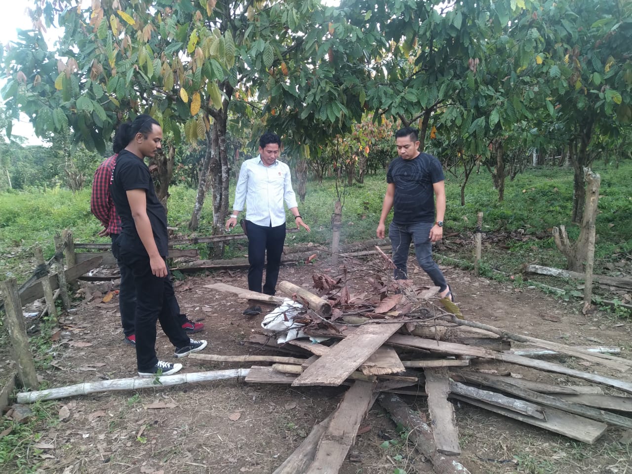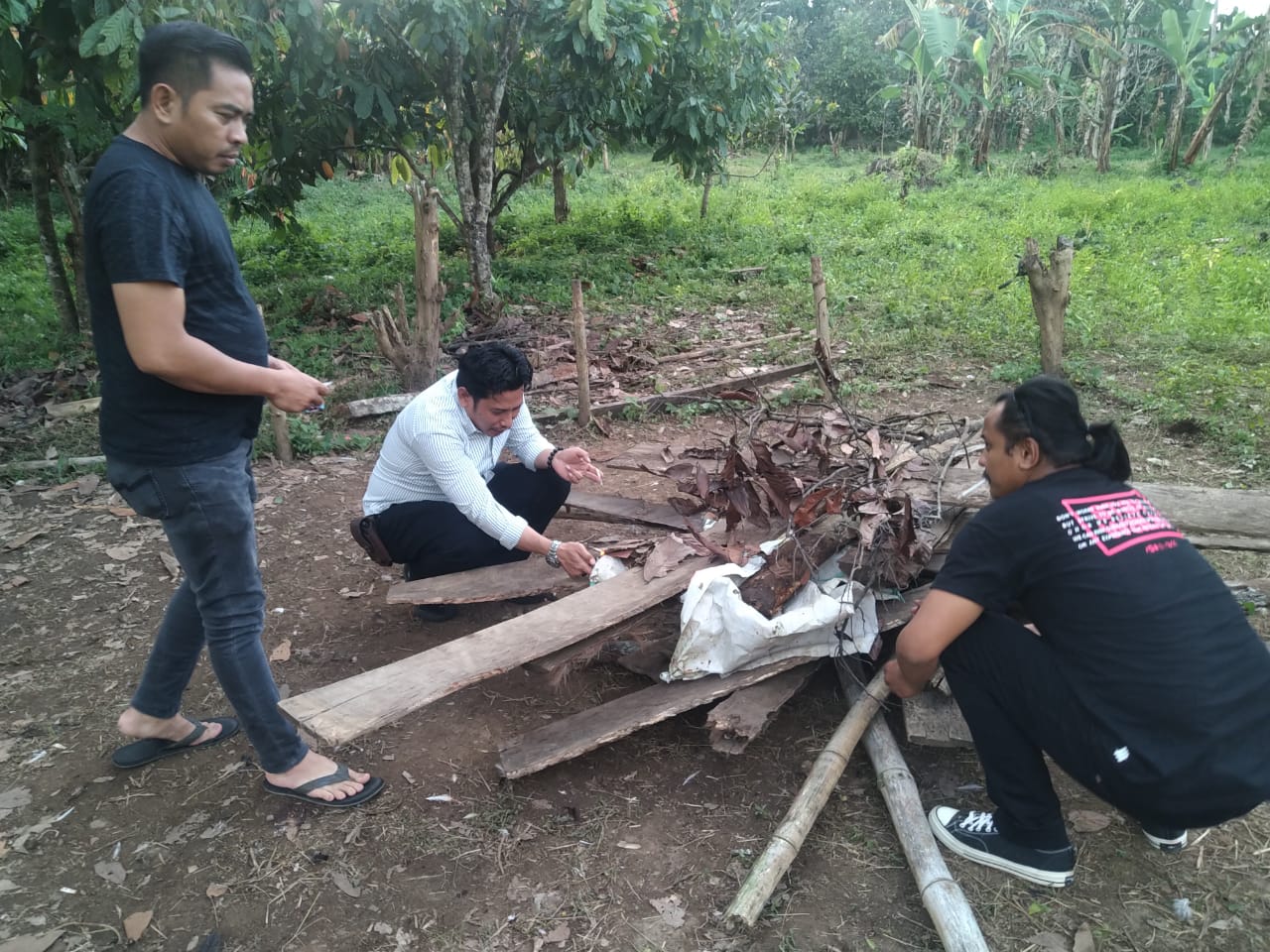 Selanjutnya Personel membongkar dan memusnahkan arena judi sabung ayam dengan cara membakarnya, agar tidak bisa di gunakan kembali.