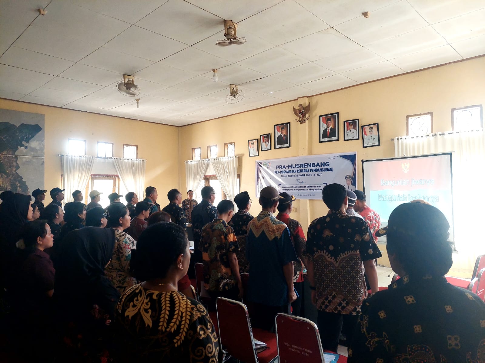 Pra-Musrenbang yang digelar Kamis (29/1) di aula Kantor Kecamatan Tomoni Timur ini dibuka langsung oleh Camat Tomoni Timur, Yulius. Kegiatan dihadiri Kepala Puskesmas Tomoni Timur, para kepala desa, Badan Permusyawaratan Desa (BPD), aparat desa, Petugas Lapangan Keluarga Berencana (PLKB), serta jajaran Pemerintah Kecamatan Tomoni Timur.