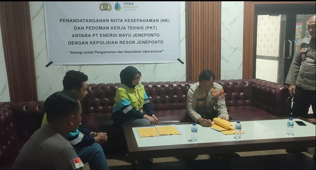 Jeneponto, Chaneltimur.com – Guna meningkatkan pengamanan aset strategis nasional, PT Energi Bayu Jeneponto menjalin kemitraan resmi dengan Kepolisian Resor (Polres) Jeneponto. Kerja sama tersebut diwujudkan melalui penandatanganan Nota Kesepahaman (NK) dan Pedoman Kerja Teknis (PKT) di Kabupaten Jeneponto, Kamis (6/1/2026).