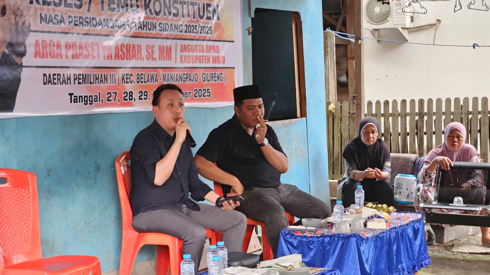 Di hadapan puluhan warga, Arga Prasetya Ashar memaparkan DPRD Wajo bersama Pemerintah Kabupaten Wajo dalam upaya pemerataan infrastruktur. Ia merinci sejumlah proyek yang berhasil diperjuangkan pada tahun anggaran 2025