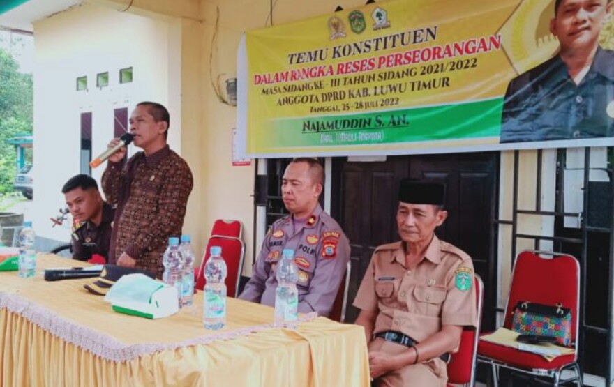 Untuk Reses ke tiga tahun 2022, masa sidang ke 3 tahun 2021 – 2022 ini, Najamuddin memilih Desa Watangpanua yang sebelumnya reses dilaksanakan di Desa Lakawali Kecamatan Malili.
