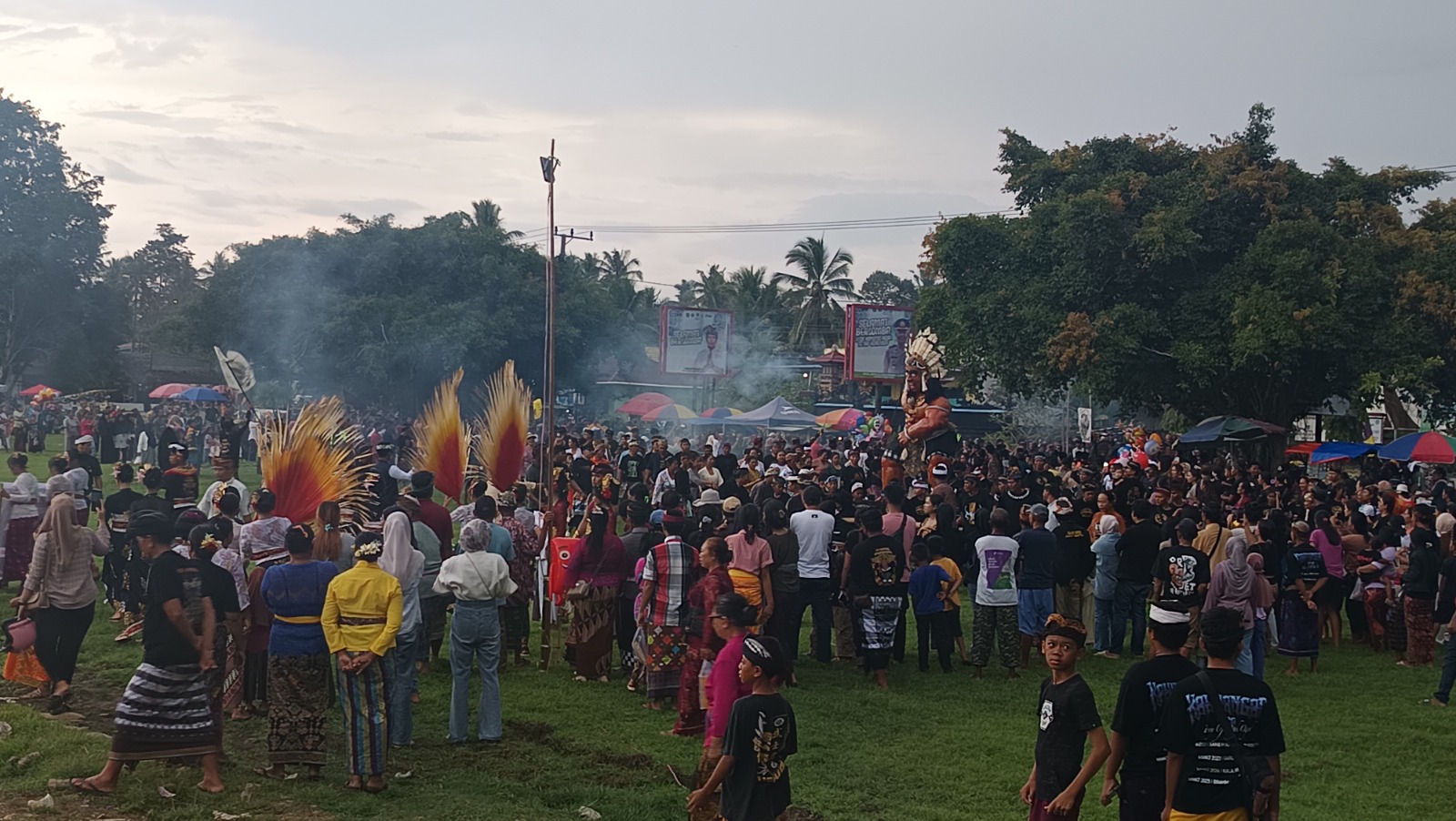 Sebanyak enam ogoh-ogoh berukuran besar diarak oleh para pemuda dari masing-masing adat. Iringan tabuhan balaganjur dan tarian tradisional menghadirkan suasana semarak sekaligus magis. Tradisi ini tidak sekadar menjadi tontonan, tetapi juga sarat makna sebagai simbol pembersihan diri dari energi negatif.