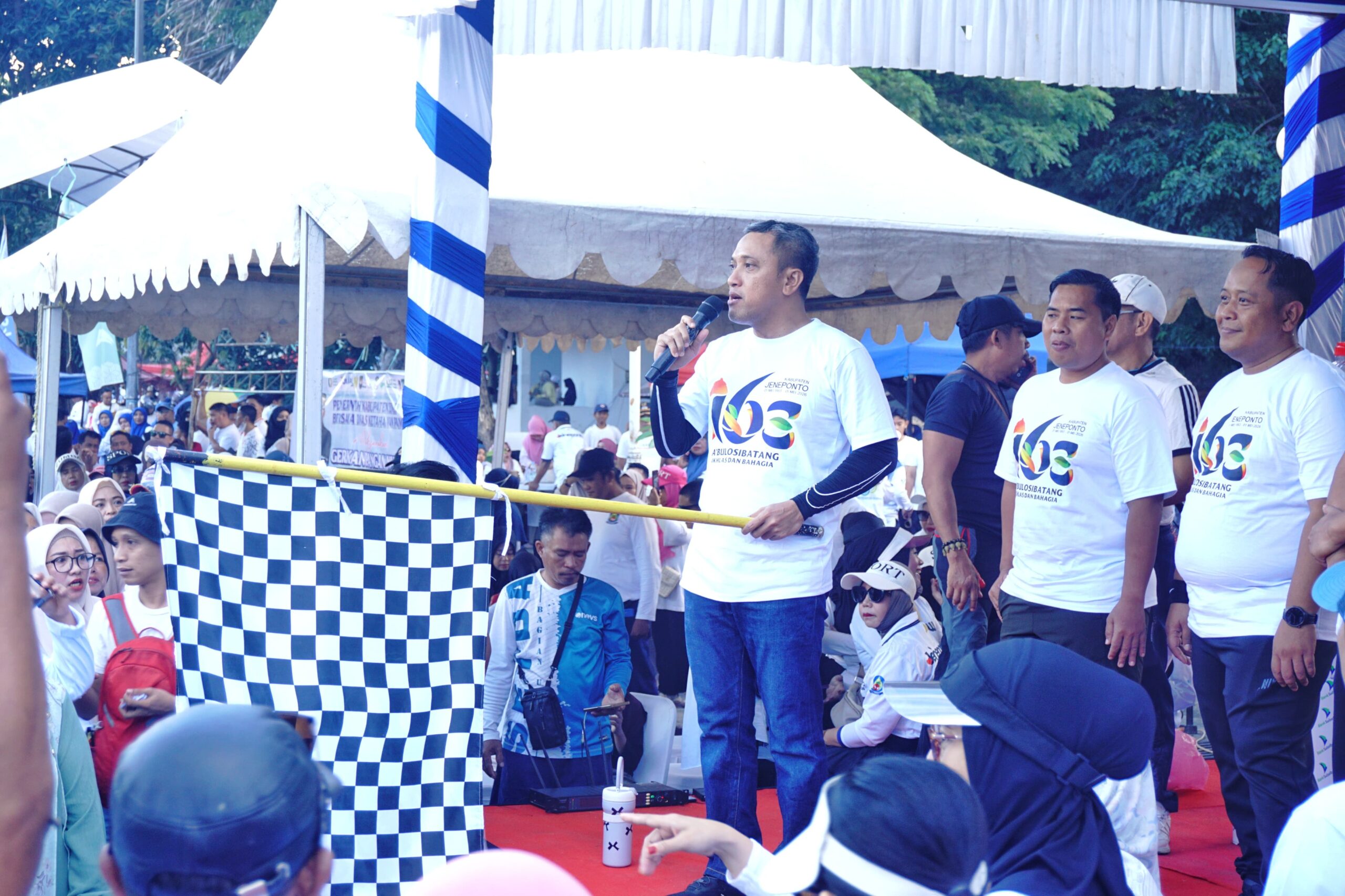 Jeneponto, Chaneltimur.com – Ribuan masyarakat Kabupaten Jeneponto memadati kawasan Taman Turatea untuk mengikuti kegiatan Jalan Santai Bahagia (JSB) dalam rangka memeriahkan Hari Jadi Kabupaten Jeneponto ke-163, Minggu 26/4/2026