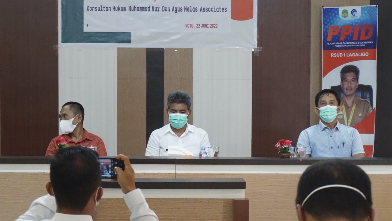 Selaku Pihak Pertama, RSUD I Lagaligo Wotu diwakili oleh dr. Benny sebagai Direktur sementara pihak Konsultan Hukum Muhammad Nur dan Agus Melas Associates, sebagai pihak kedua diwakili oleh Muhammad Nur. Penandatanganan PKS disaksikan oleh para pejabat dan staf di lingkungan RSUD I Lagaligo, Rabu (22/06/2022), di RSUD I Lagaligo Wotu.