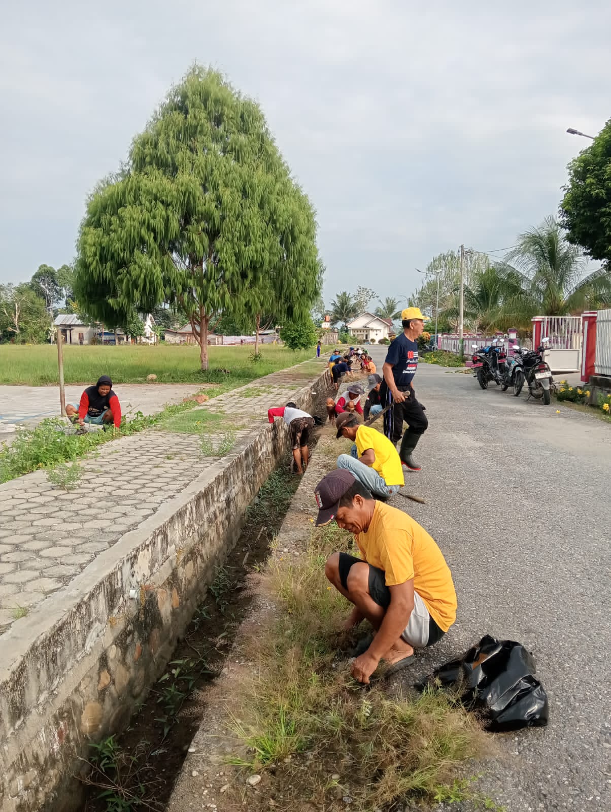 Sementara itu, di Desa Cendana Hitam Timur, pembersihan lingkungan dipusatkan di beberapa titik, mulai dari selokan depan kantor desa hingga jalan poros desa yang terlihat kotor dan banyak sampah.