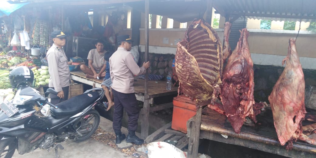 Jeneponto, Chaneltimur.Com – Berlokasi di pasar induk karisa kelurahan empoang kecamatan binamu kabupaten jeneponto, sat binmas polres jeneponto yang di pimpin Kasat Binmas Akp Bakri, S.Sos,MM didampingi Kbo Binmas Ipda Tengku Abdul Rahman dan Kanit Binkamsa Aiptu Suparman menyambangi para pedagang maupun pengunjung dan masyarakat sekitar pasar induk karisa, kegiatan tersebut dilaksanakan dalam memantau situasi kamtibmas dan memantau ketersediaan minyak goreng sekaligus sosialisasikan PMK ke pedagang daging. Kamis 21/07/2022.