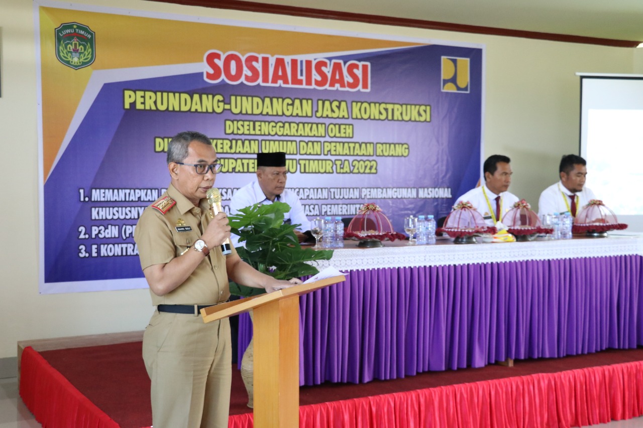 “Kegiatan yang dilakukan hari ini sangat penting dan strategis karena memberikan hal yang sangat penting bagi kita untuk bisa memahami lebih jauh terkait dengan jasa konstruksi. Oleh karena itu, kita berharap hari ini bisa mendapatkan informasi ataupun masukan dari narasumber berkaitan dengan kegiatan jasa konstruksi ini,” kata Sekda Lutim.Ia juga berharap, sosialisasi tidak hanya diikuti oleh jajaran pemerintah daerah tetapi juga jajaran para pelaku jasa konstruksi yang ada di kabupaten Luwu Timur, untuk bisa sama-sama dan memahami terkait dengan aturan yang diatur dalam UU No. 2 Tahun 2017.