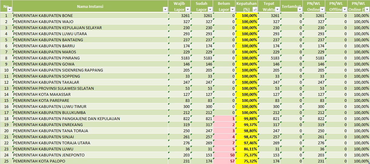 Sementara dari tabel Admin LHKPN KPK juga terlihat bahwa untuk Kabupaten Luwu Timur dari 300 wajib lapor LHKPN seluruhnya sudah melaporkan dengan tepat waktu atau tingkat kepatuhan terhadap LHKPN mencapai 100%.