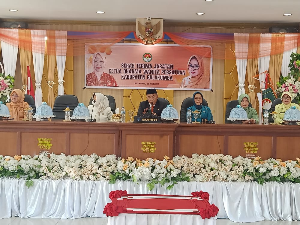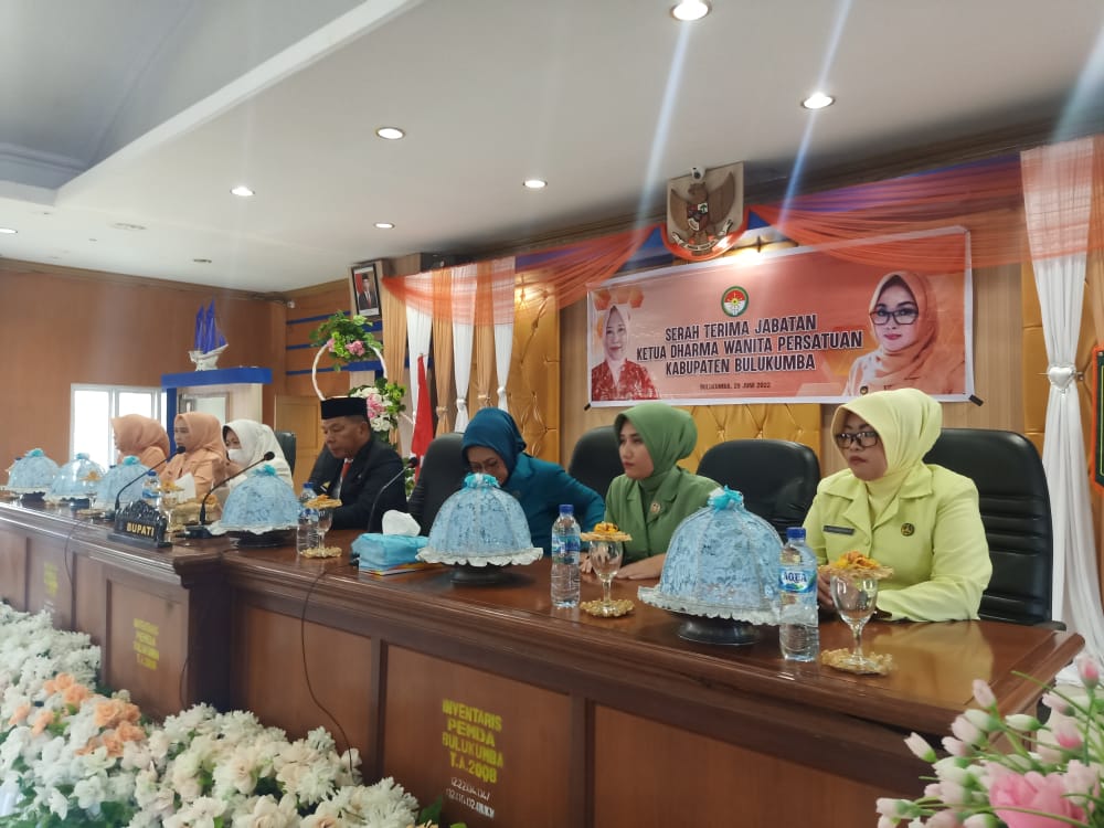 Kegiatan serah terima jabatan ketua DWP (Darma Wanita Persatuan), Kab. Bulukumba dari pejabat lama Ny. Irmayanti Asnawi.A.B.Amal (Ketua Dharma Wanita Persatuan Kabupaten Bulukumba Masa Bakti 2019 – 2021) kepada Pejabat Baru Ny. Intan Ali Saleng (Ketua Dharma Wanita Persatuan Kabupaten Bulukumba Masa Bakti 2022 – 2024 yang dipimpin oleh Bupati Bulukumba, H.Andi Muchtar Ali Yusuf, Turut hadir dalam giat tersebut Ir. Misbawati Andi Wawo (Asisten Administrasi Umum Pemkab Bulukumba), Ny. Yani Dendi Rahmat Subekti S.Ip (Ketua Persit KCK Cabang XXVIII Dim 1411/Blk), Ny. Hj Ira Andi Edy Manaf (Ketua Penggerak PKK Kab. Bulukumba), Ny. Dr. Nurul Cahyadi Sabri (Ketua Ikatan Adiyaksa Darma Karini Kab. Bulukumba), Ny. Intan Ali Saleng (Ketua Dharma Wanita Persatuan Kabupaten Bulukumba), Para Kepala OPD Pemkab Bulukumba, Para Camat Se-Kab. Bulukumba, Para Pengurus dan anggota DWP Se-Kab. Bulukumba.