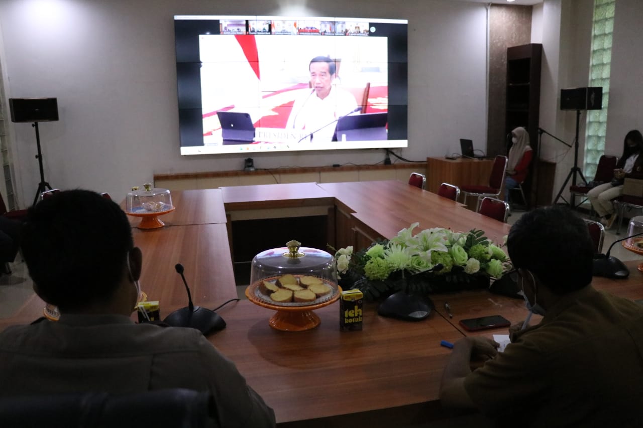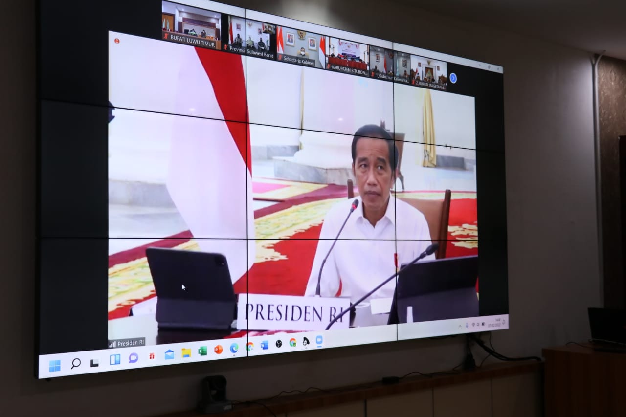 Luwu Timur,Chaneltimur.com – Staf Ahli Pembangunan, Rapiuddin Tahir bersama Kapolres Luwu Timur, AKBP. Silvester Mangombo Marusaha Simamora dan Kepala Dinas Pemberdayaan Masyarakat dan Desa, Halsen, mengikuti Arahan Presiden RI secara virtual di ruang Rapat Pimpinan Kantor Bupati Luwu Timur, Senin (07/02/2022).