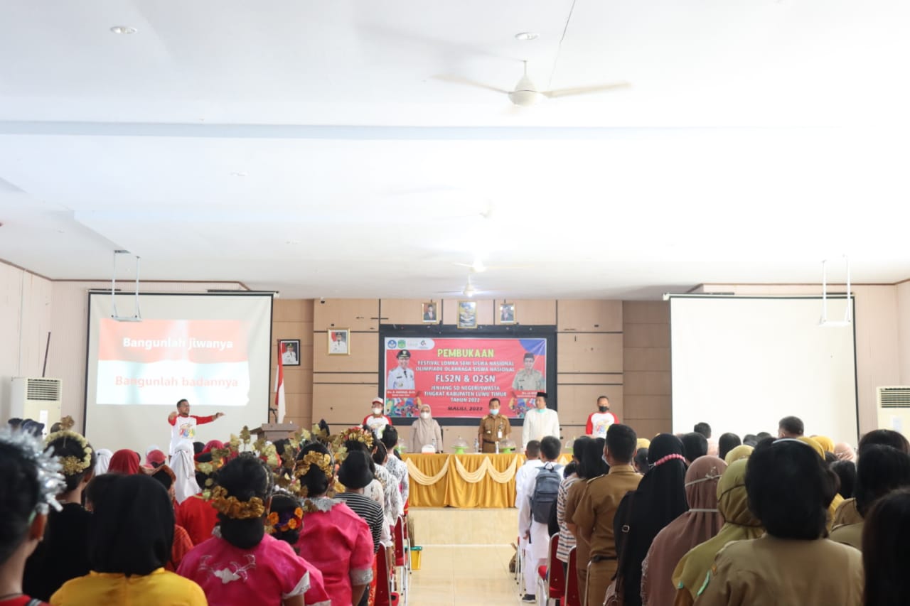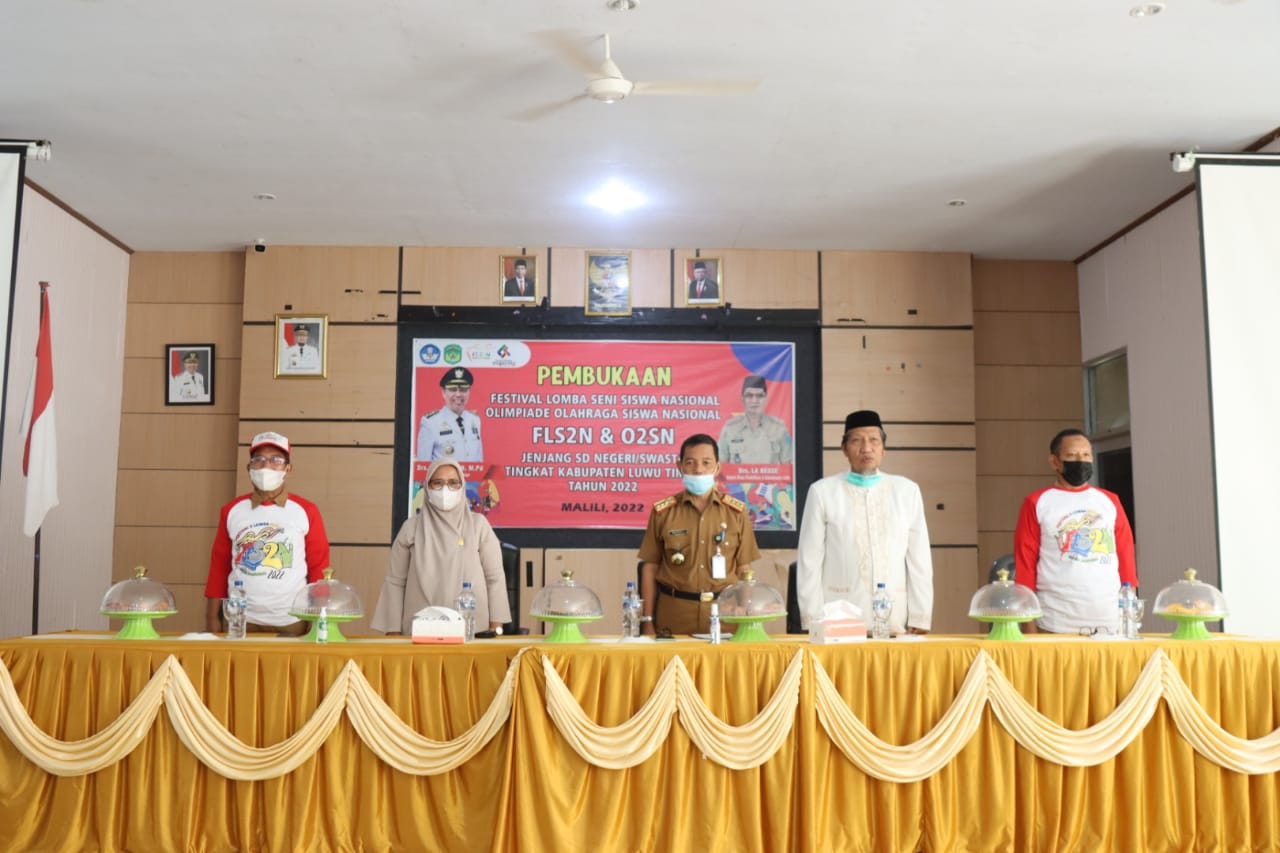 LUTIM, Chaneltimur.com – Staf Ahli Pembangunan, Rapiuddin mewakili Bupati Luwu Timur (Lutim) didampingi oleh Komisi I Dewan Perwakilan Rakyat Daerah (DPRD) Lutim, Hj. Harisah Suharjo, Kepala Dinas Pendidikan dan Kebudayaan, La Besse, Ketua Dewan Pendidikan, H. Adrias Bara, Sekretaris Disdikbud, H. Basruddin, membuka Kegiatan Minat Bakat dan Kreativitas Siswa Olimpiade Olahraga Siswa Nasional (O2SN) dan Festival Lomba Seni Siswa Nasional (FLS2N) Tingkat Sekolah Dasar dan Swasta Tahun 2022 se Luwu Timur, di Aula Disdikbud, Selasa (31/05/2022).