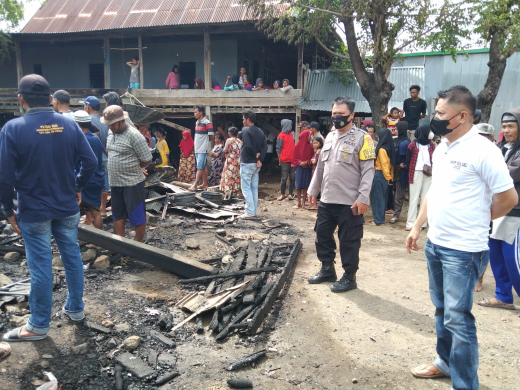 Jeneponto,Chaneltimur.Com – Bhabinkamtibmas Aiptu Akbar mendampingi personil polsek binamu yang dipimpin kapolsek binamu Iptu Baharuddin.M,S.Sos mendatangi tkp kebakaran rumah panggung yang berlokasi di dusun ka’nea desa sapanang kec binamu kab jeneponto yang diduga karena adanya korsleting arus pendek listrik Selasa 1/2/2022