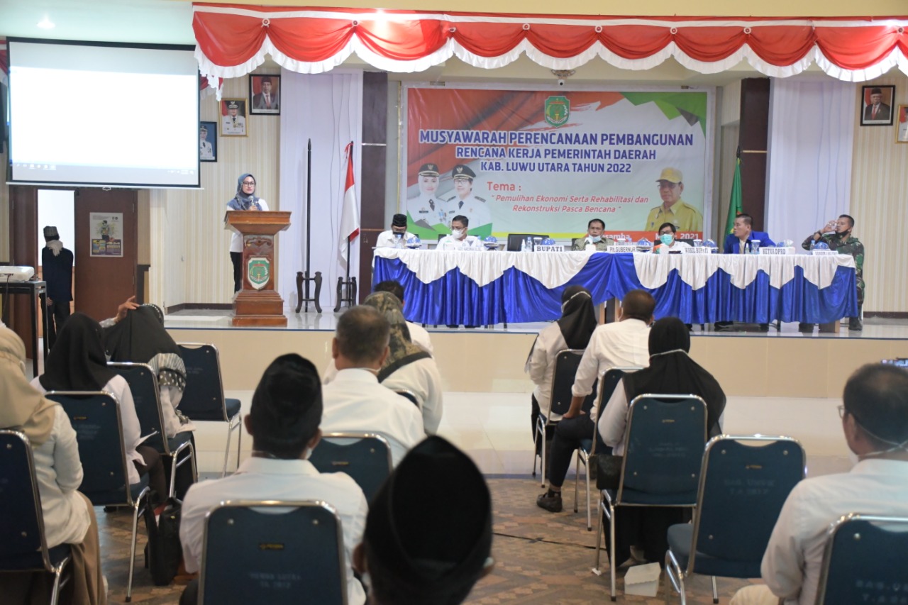 Hal ini terungkap dalam kegiatan Musrenbang RKPD Tahun Anggaran 2022 yang digelar di Aula La Galigo Kantor Bupati Luwu Utara, Rabu (24/3/2021). Kegiatan ini dibuka Bupati Luwu Utara, Indah Putri Indriani, dan dihadiri Staf Ahli Gubernur Bidang Ekonomi Pemerintah Daerah Provinsi Sulawesi Selatan Abdul Azis, Wakil Bupati Suaib Mansur, Wakil Ketua DPRD Karemuddin, unsur Forkopimda lainnya, dan para Kepala Perangkat Daerah.