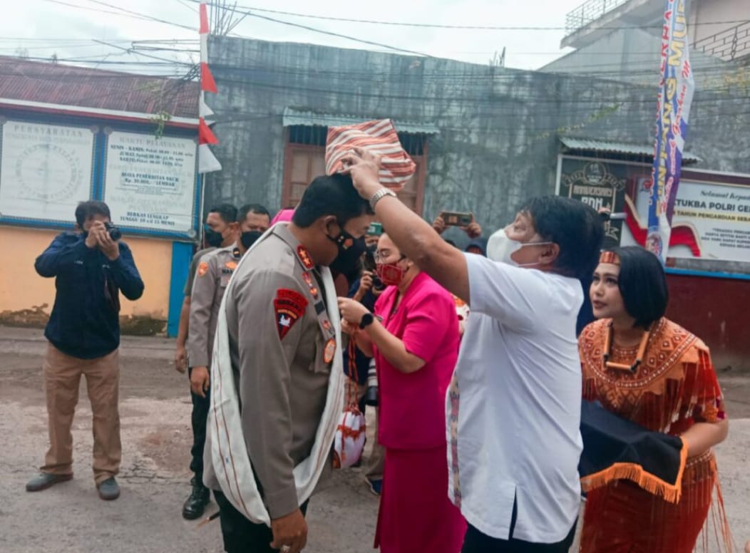 Kapolda dan Ibu Bhayangkari dihalaman Mapolres dikenakan sarung dan passapu khas Toraja.