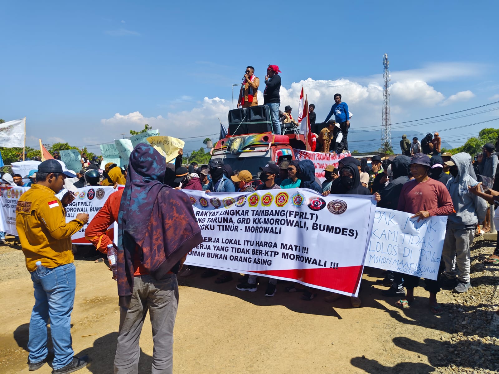 PT. Vale site morowali 13 Oktober 2025 masa dari tiga belas desa lingkar tambang menduduki perusahaan raksasa yang terletak di desa bahomotepe kecamatan bungku timur kabupaten morowali.