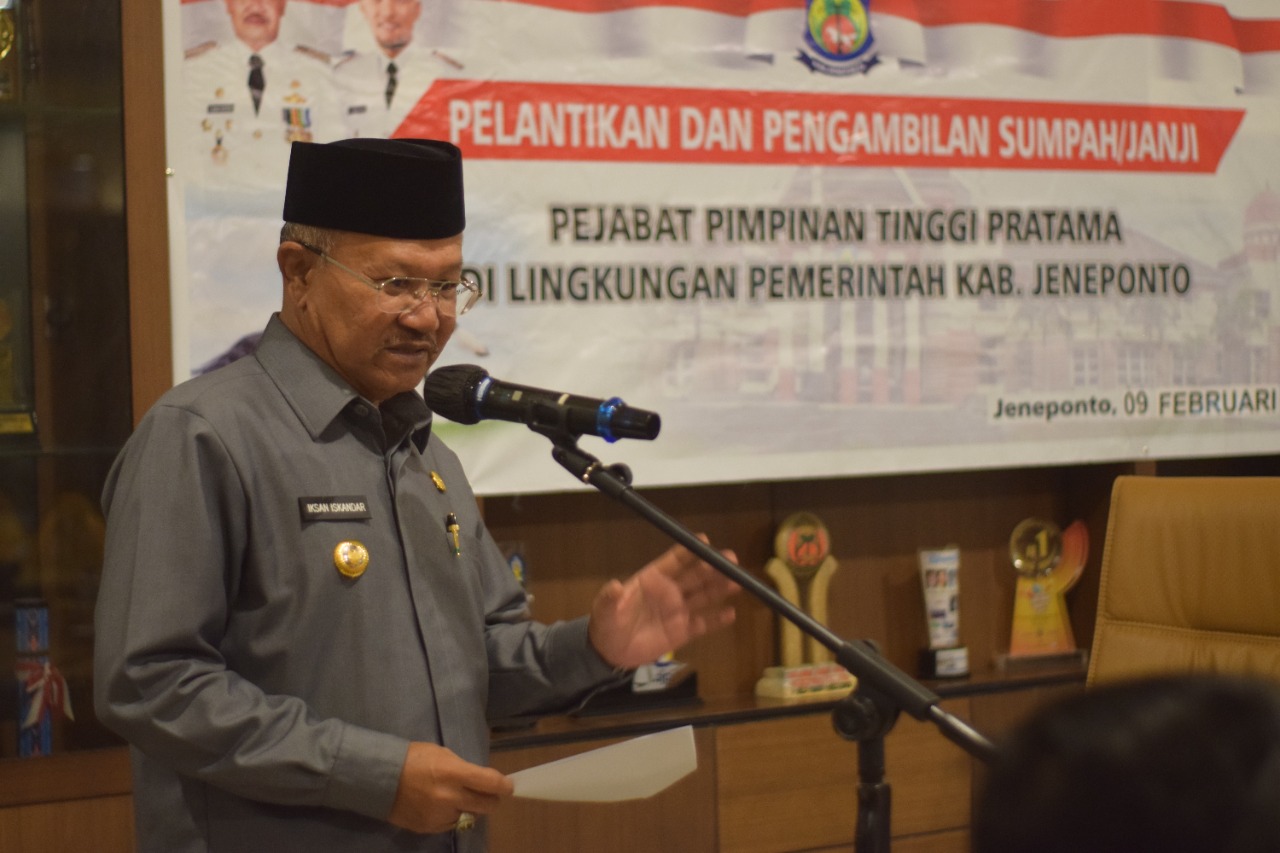 Jeneponto,Chaneltimur.Com – Bupati Jeneponto H. Iksan Iskandar melantik tiga pejabat yakni pejabat tersebut H.Mustakbirin, SH.,MH sebagai asisten pemerintahan dan kesra, DR. H. Andri Yusuf.,SH,MH staf ahli bidang pemerintahan politik dan hukum, serta H. Abd. Rahman Nara.,SE,.M.Si staf ahli bidang pembangunan dan kemasyrakatan Rabu 09/02/2022