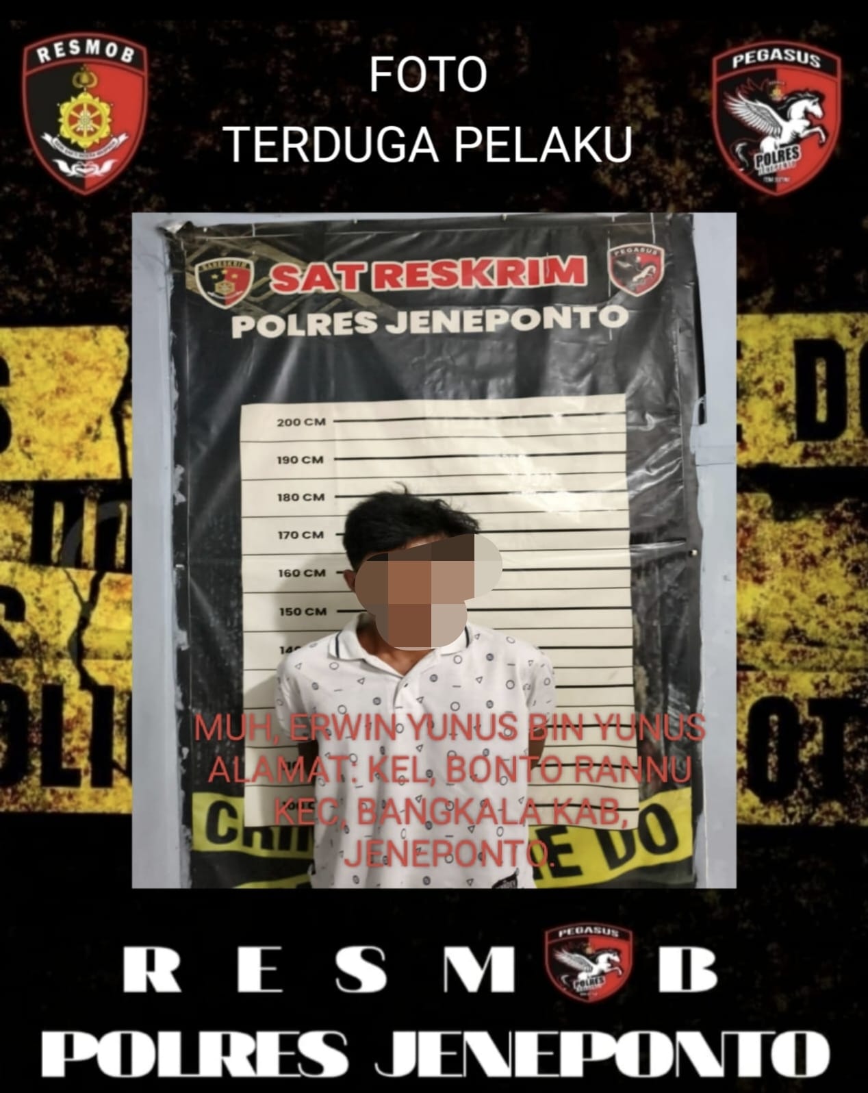 Jeneponto, Chaneltimur.com – Tim Pegasus Resmob Satuan Reserse Kriminal (Sat Reskrim) Polres Jeneponto berhasil meringkus seorang pemuda berinisial ME (22) yang diduga kuat sebagai pelaku tindak pidana pencurian sepeda motor (curanmor). Penangkapan dramatis tersebut berlangsung pada hari Sabtu, 14 Maret 2026, sekira pukul 16.00 Wita, di Lingkungan Bontorannu, Kelurahan Bontorannu, Kecamatan Bangkala, Kabupaten Jeneponto, dipimpin langsung oleh Dantim Pegasus Resmob, Aiptu Abd. Rasyad.