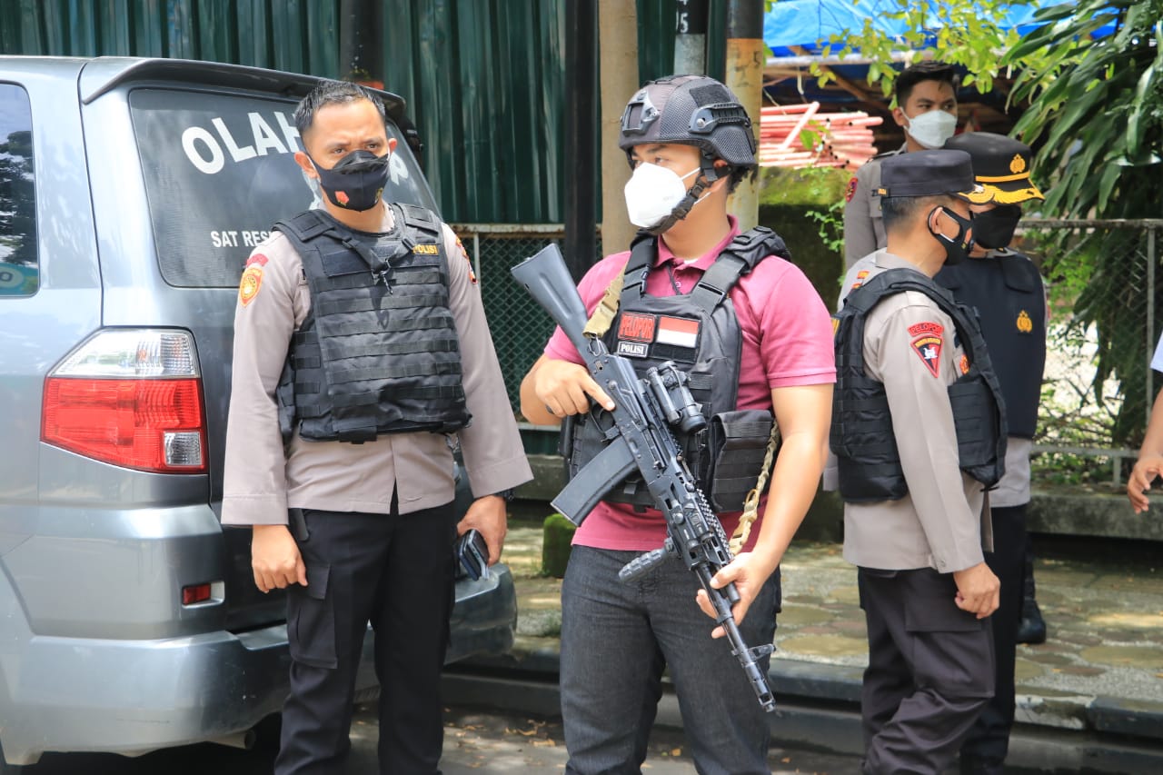 Pantauan peliput, Juga tampak One Teror Gegana melaksanakan Pengamanan disekitar lokasi kejadian melihat antusias warga yang hendak melihat langsung tempat kejadian.
