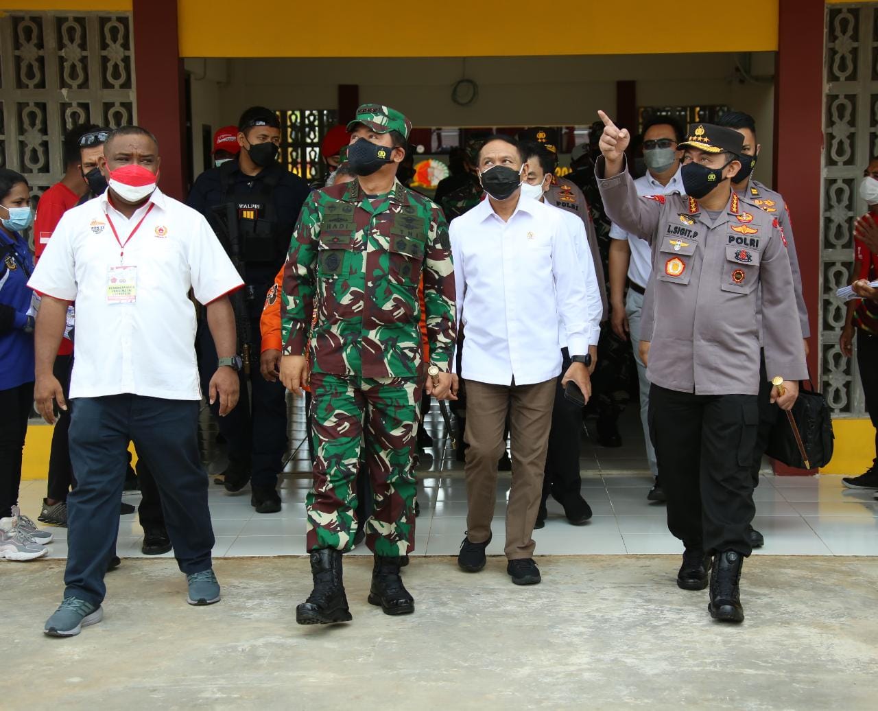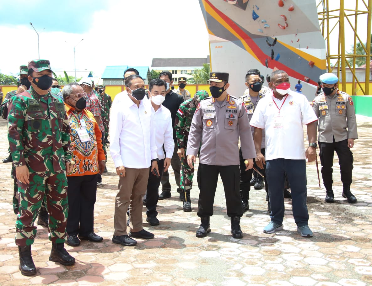 Papua,Chaneltimur.com – Panglima TNI Marsekal Hadi Tjahjanto, Kapolri Jenderal Listyo Sigit Prabowo dan Menpora Zainudin Amali melakukan peninjauan venue pertandingan panjat tebing dan biliar PON ke-XX di Kabupaten Mimika, Papua, Sabtu (28/8/2021).