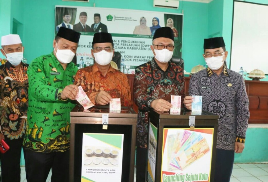 Gerakan Sejuta Koin Wakaf Pendidikan Madrasah dan PonPes yang digagas oleh Kakanwil Kemenag Sulawesi Selatan kemudian diresmikan secara simbolis oleh Wakil Bupati Luwu Timur bersama Kakanwil Kemenag SulSel, Kepala Kantor Kemenag Luwu Timur dan Sekretaris Daerah Luwu Timur. Hasil dari gerakan sejuta koin tersebut akan disalurkan ke pembenahan dan kebutuhan sarana dan prasarana Madrasah dan Pondok pesantren yang masih tertinggal dan terpencil.