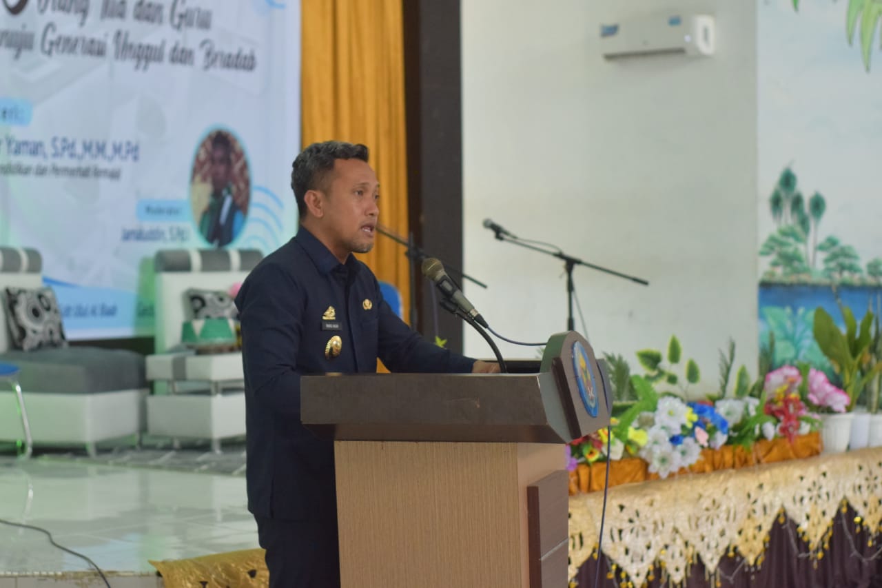 Wakil Bupati H. Paris Yasir saat memberikan sambutan menyampaikan apresiasi dan penghargaan kepada yayasan pesantren Wahdah Islamiyah kabupaten Jeneponto