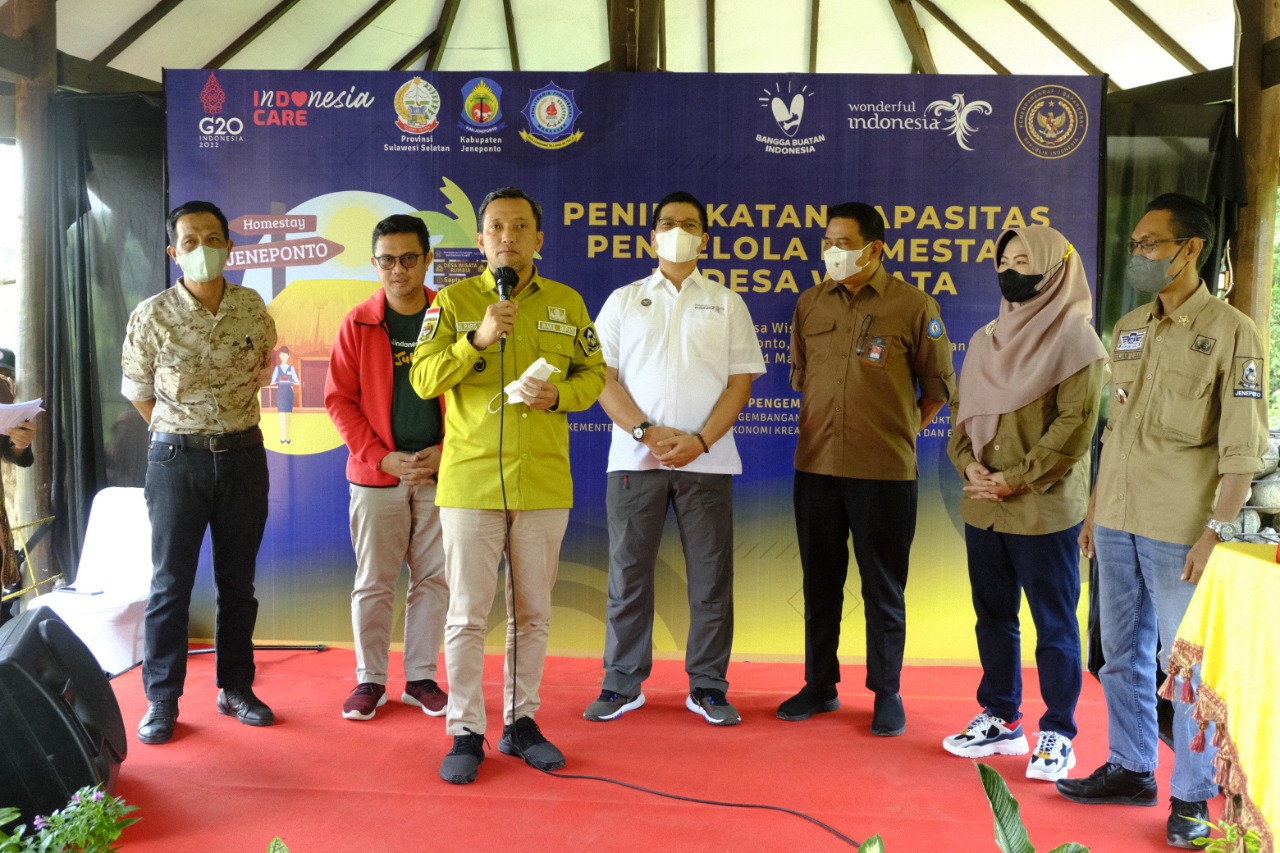 hadir dalam acara tersebut Kadisbudpar Prov Sulsel, Prof. Dr. Muhammad Jufri, M.Si.,Psi, perwakilan Kantor Staf Presiden, Dr. Albertien Pirade selaku Tenaga Ahli Utama Bidang Pariwisata dan Investar, Noerhadi Sadli, SE, Tenaga Ahli Bidang Organisasi, Tata Laksana, dan Hubungan Antar Lembaga Kemenparekraf, Poltekpar Makassar, kepala dinas parawisata jeneponto Elly Isriani serta camat rumbia