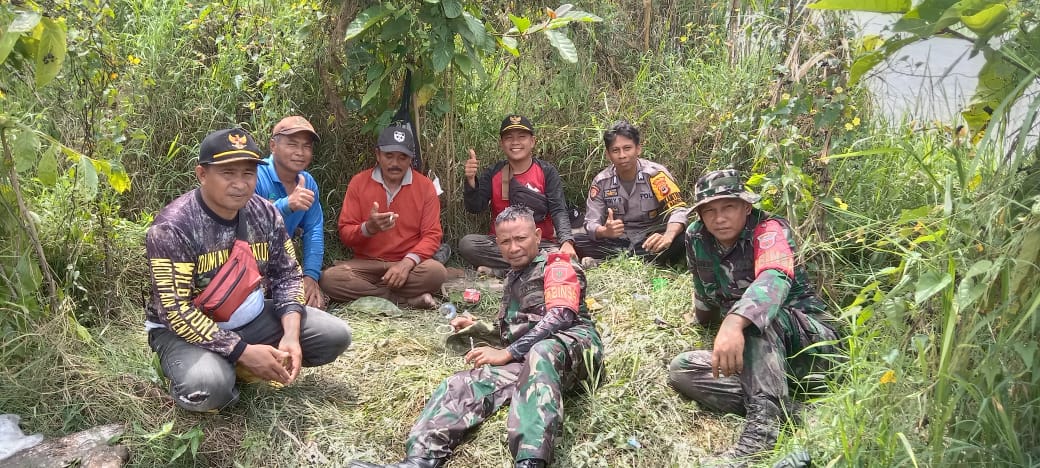 Selain warga, tampak pula sejumlah aparat keamanan dari TNI dan Polri ikut membantu pemasangan tanggul sementara tersebut.