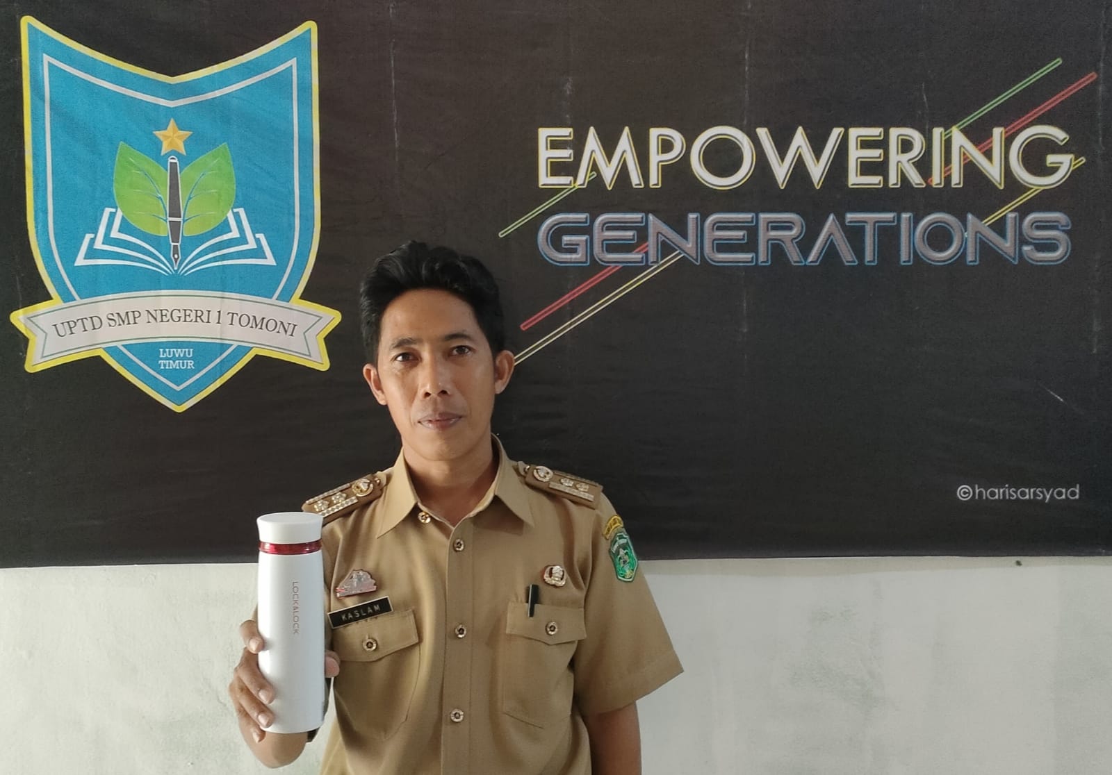 Oleh karenanya membiasakan membawa tumbler sendiri sebagai pengganti botol plastik adalah salah satu solusinya mengurangi sampah plastik tutur Kepsek UPTD SMPN 1 Tomoni KASLAM, S.Pd. M.Si.