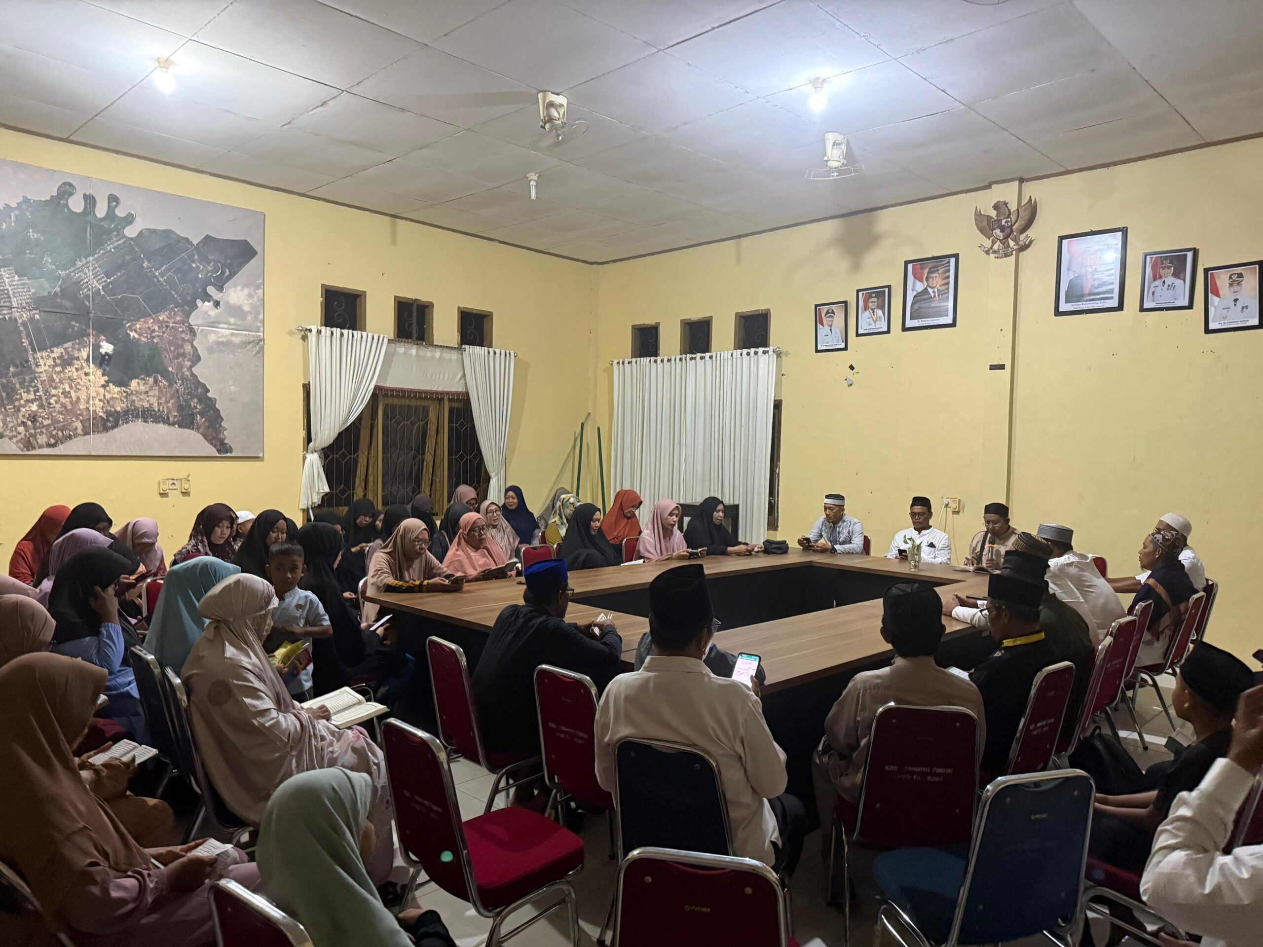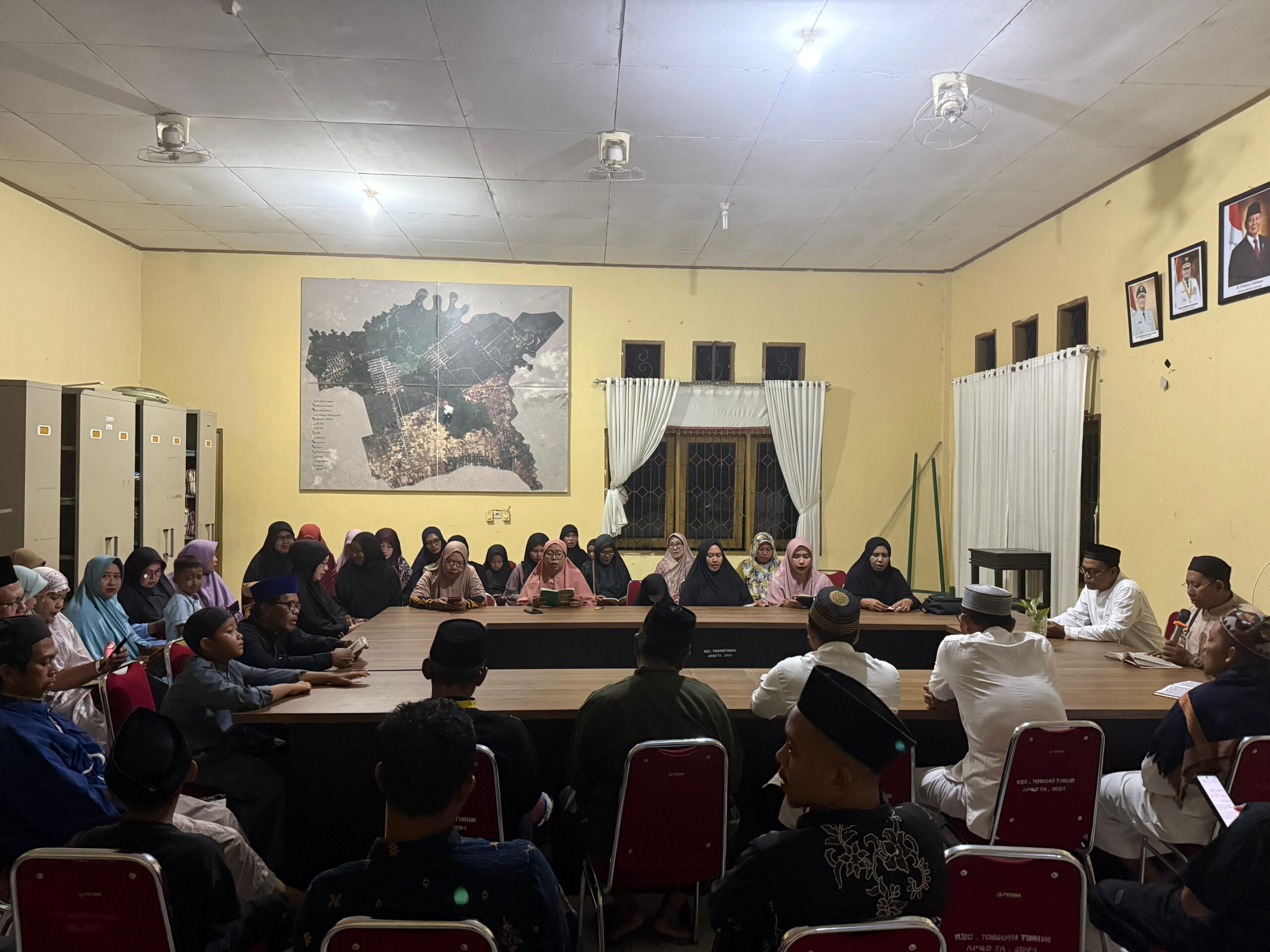 Luwu Timur, Chaneltimur.com — Suasana khusyuk menyelimuti Kantor Camat Tomoni Timur pada Kamis (30/10) malam. Lantunan ayat suci Al-Qur’an menggema dari ruang utama kantor, ketika para pegawai, kepala desa, dan perwakilan unit kerja berkumpul dalam kegiatan Yasinan rutin setiap malam Jumat, sebuah tradisi yang kini menjadi bagian dari budaya kerja di wilayah ini.